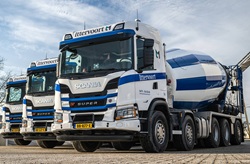 Ittervoort Betoncentrale uit Ittervoort heeft drie nieuwe Scania 420G B10x4*6NA CG17N XT Wide Spread betonmixers in gebruik genomen. De vijfassige Scania’s zijn af-fabriek geleverd met de Wide Spread Triple-asconfiguratie, waarmee een wettelijk toegestaan lees meer...